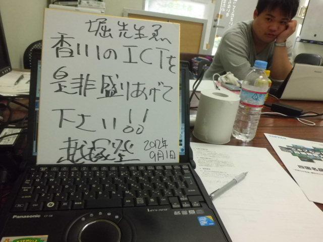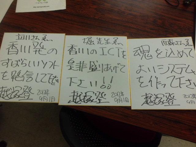 mtg 終了後に記念撮影をしました.越塚先生にこれからの開発に向けて,色紙に何か書いてもらいました.