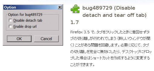 再現性がよくわからず 1 年以上,この問題は放置していたのですが,「firefox タブ 勝手 ウインドウ」などと検索してみると,既知のバグみたいで,対応するアドオンまで出ていました.