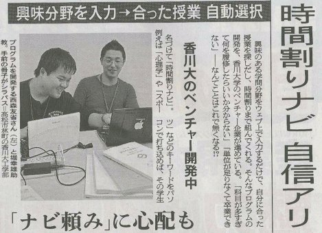 本日の朝日新聞の 29 面?に「興味分野を入力→合った授業 自動選択」というタイトルで,時間割ナビシステムについて取材していただいた記事が掲載されました.