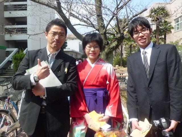 そのあと一緒に学内を少し散歩しました.そこでタツカワ君と遭遇.そういえば,カシマ君やタツカワ君が大学に入ったばかりのころもこんな感じで大学でばったり遭遇してました.