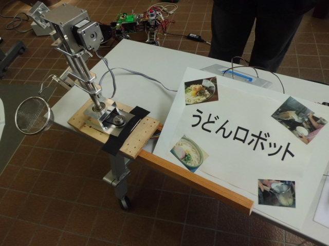 お掃除ロボのルンバのように軽快には動きませんでしたが,早く実用化されると良いなと思いました.あと謎のうどんロボットがありましたが,こちらはネタなようでした.機械系の人達もなかなか面白いですね.
