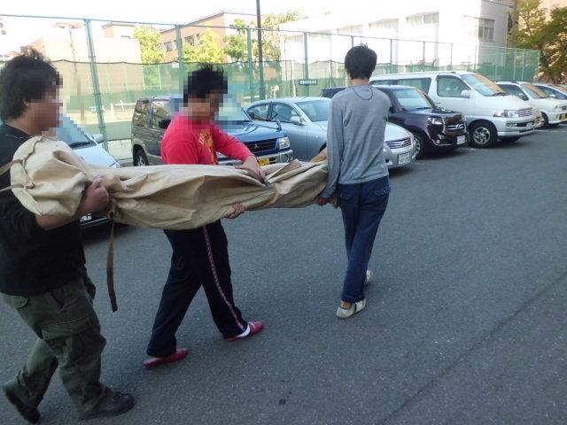 ニシモリ君やタツカワ君,それにカシマ君が登場して,テント作りをしていました.