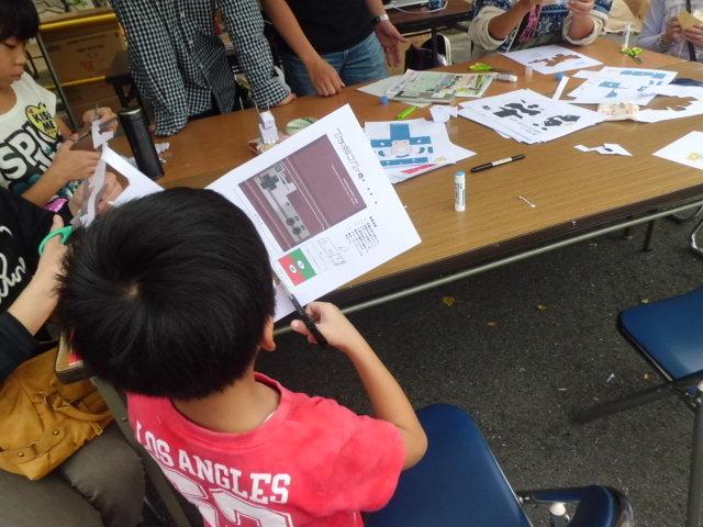 ホワイトベーススタッフは去年は金魚すくいをやっていたのですが,今年は何をするのかと思ったら,ペーパークラフトでした.なぜかファミコンのコントローラの形をしているのを作ったりしていました.私も試しにやってみたのですが,イライラしてきてうまくできませんでした….