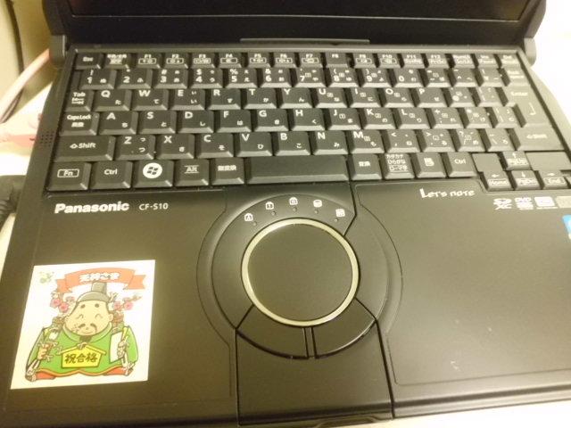 修理は運送業者が引き取りにきてくれて,約 1 週間で修理完了してまた届けてくれるとのことでした.その間の代替機として,レッツノート s10 を急遽購入してセットアップし,ビックリマンシールを買って貼っておきました.
