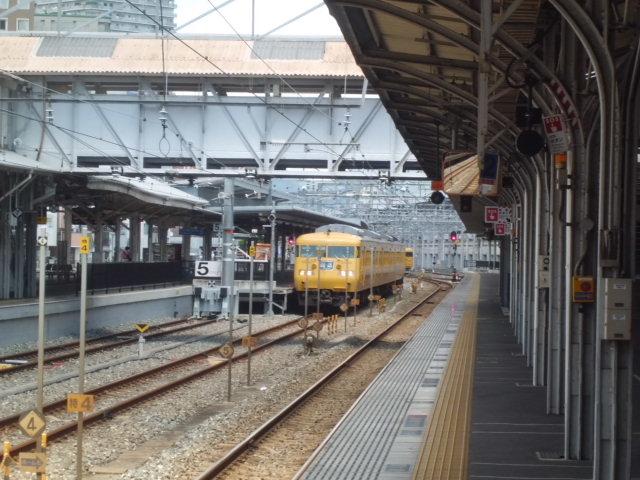 高松駅でマリンライナーに乗って出動,岡山駅に着くとどこかレトロな電車が沢山とまっていました.