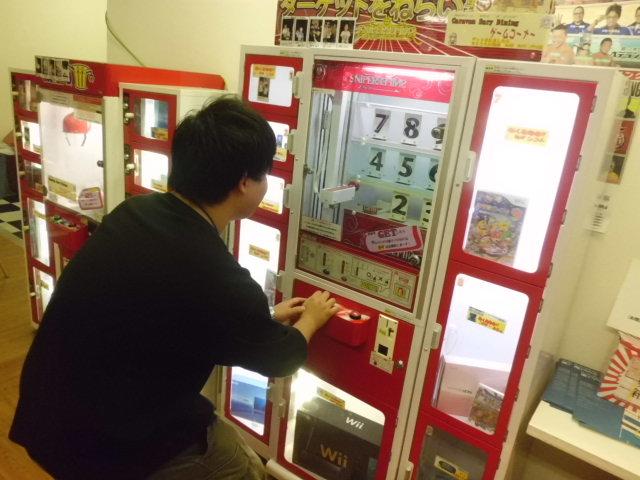 あと UFO キャッチャーみたいな機械が置いてあり,景品はなんと発売されたばかりのドラクエ 10でした.さっそくニシモリ君が果敢に挑戦しましたが,当たる気配がなさそうでした.