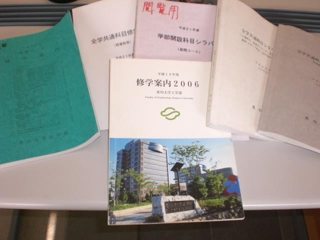 - シラバス冊子,履修ガイド(電話帳(死語かも)並の厚さと重さ)