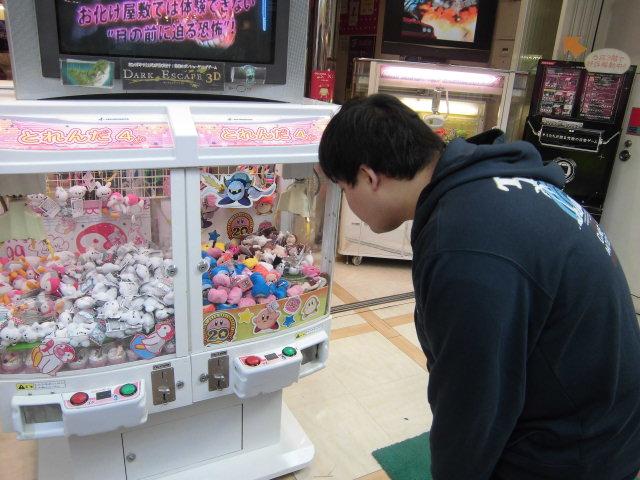 帰りに商店街を歩いていると見たことのある人が前のめりになって,景品を取るゲームをやっていました.近くで見ると,スタッフのニシモリ君でした.なんでもカービィの人形が欲しいとかで挑戦しているとのことでした.20 歳を過ぎた良い大人が本気でカービィ人形を欲しがるとは,30 歳を過ぎた私でも想像していませんでした.
