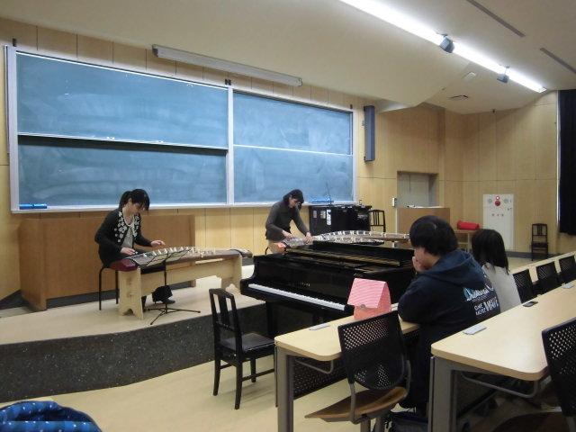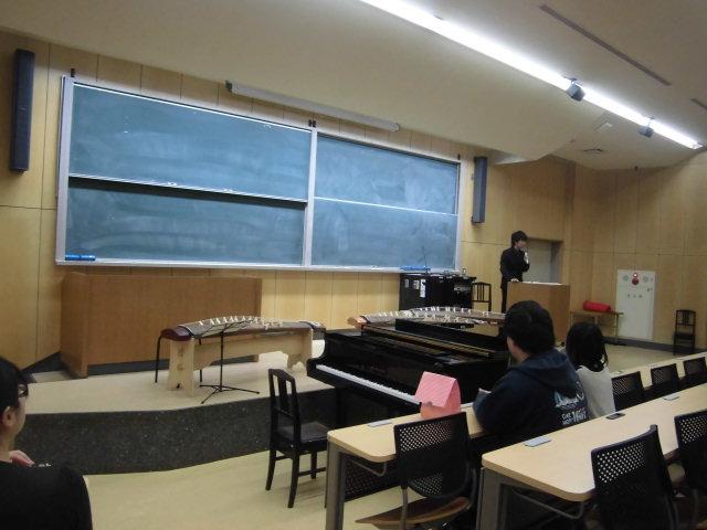 今回のランチタームコンサートでは,琴の演奏を聞くことができました.琴は響きの少ない楽器ですが風情のある音色だと思いました.なぜかスタッフのニシモリ君が最前列のピアノのすぐ横に座っていて,このあとピアノのところに行くというのを想像したくない気持ちが高まりました.